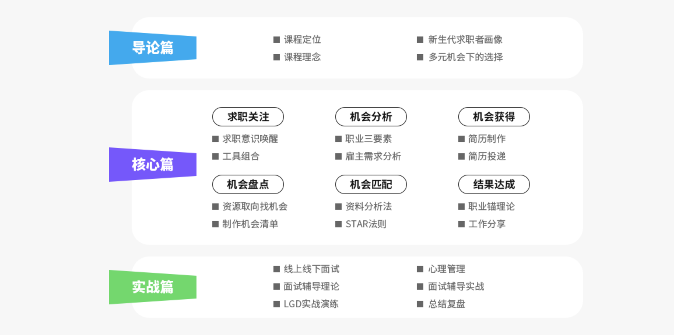 因方向不同,经验有限,上述就业难题困扰着很多高校的老师和应届生。2007年12月28日教育部下发《大学生职业发展与就业指导课程教学要求》,要求2008年起所有普通高校开设职业发展与就业指导课程,并作为公共课纳入教学计划。
