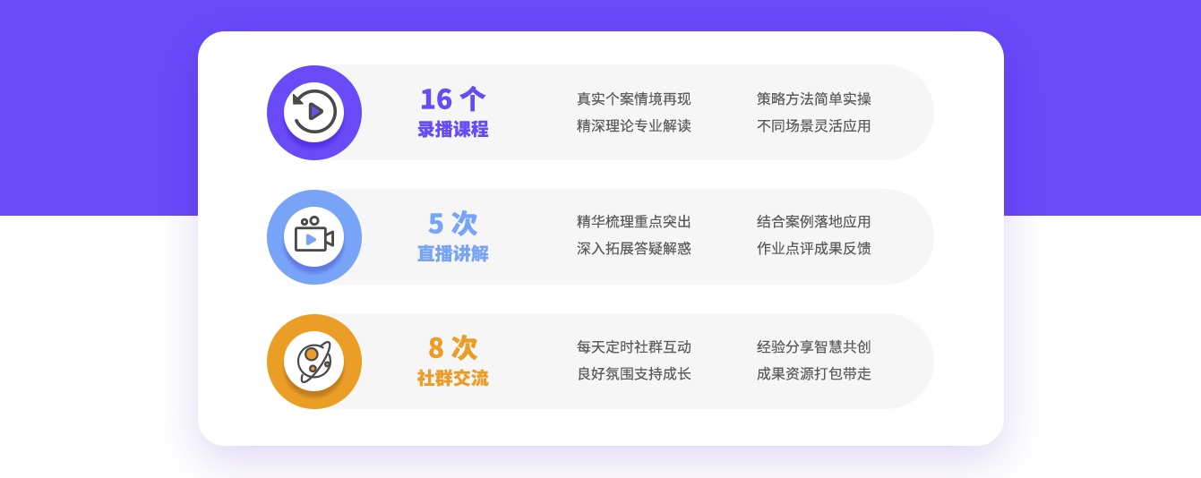 北森生涯十二位专家讲师合力研发,在梳理数百份大学生咨询个案的基础上开展课程设计。以真实的个案情境为开端,对问题产生的原因进行理论解读,提供解决问题的工具、方法和流程,兼顾理论性与实用性,助力高校老师对学生的生涯困惑精准定位,高效指导。